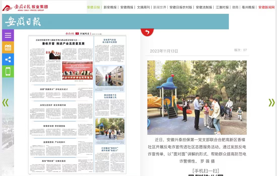 近日,為扎實推進主題教育,充分發(fā)揮黨員先鋒模范作用,安徽興泰擔(dān)保第一黨支部聯(lián)合香樟社區(qū)開展反電詐宣傳進社區(qū)志愿服務(wù)活動。此次活動還受到安徽日報記者關(guān)注。