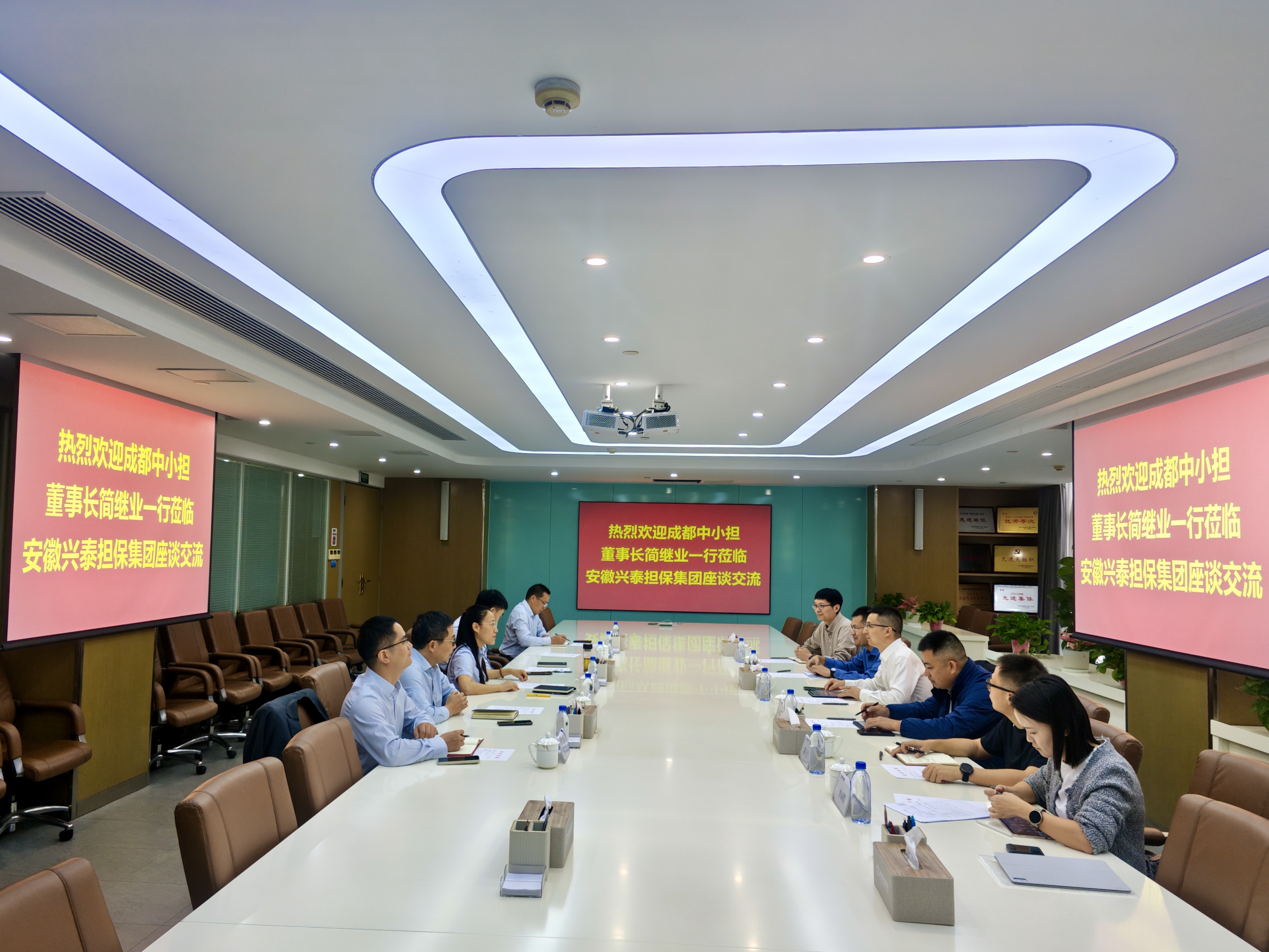 近日,成都產(chǎn)融服務(wù)控股集團(tuán)副總經(jīng)理,成都中小企業(yè)融資擔(dān)保有限責(zé)任公司董事長、總經(jīng)理簡繼業(yè)一行到訪安徽省興泰融資擔(dān)保集團(tuán)有限公司(以下簡稱“安徽興泰擔(dān)?!保╅_展業(yè)務(wù)交流。安徽興泰擔(dān)保黨委委員、副總經(jīng)理張曉敏、許敬銀及相關(guān)部門負(fù)責(zé)人參與座談。